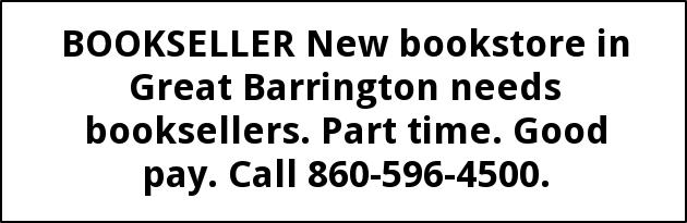 BOOKSELLER New bookstore in Great Barrington needs booksellers. Part time. Good pay. Call 860-596-4500.