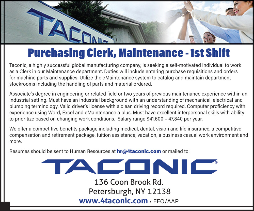 Oct 11, 2025. Taconic Purchasing Clerk Jobs from The Berkshire Eagle