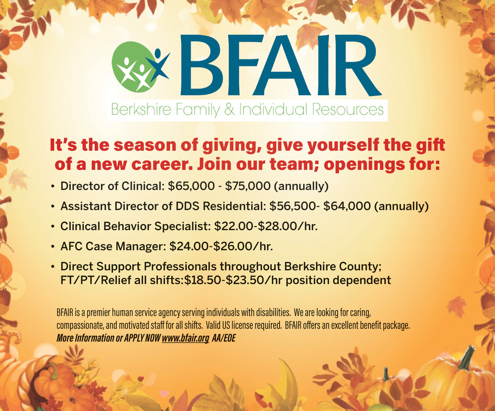 Nov 01, 2025. BFAIR - Berkshire Family & Individual Resources Jobs Jobs from The Berkshire Eagle