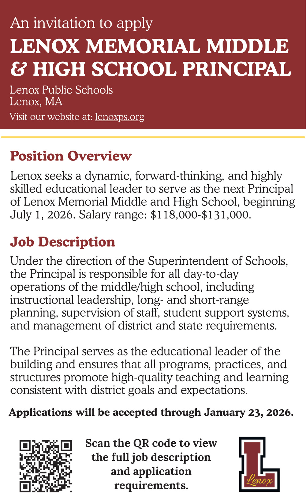 Jan 03, 2026. Lenox Memorial Middle and High School Principal Director Jobs from The Berkshire Eagle