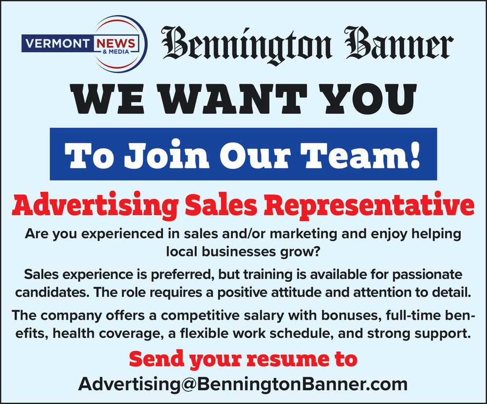 Feb 04, 2026. Vermont News & Media Advertising Sale Specialist Jobs from The Bennington Banner