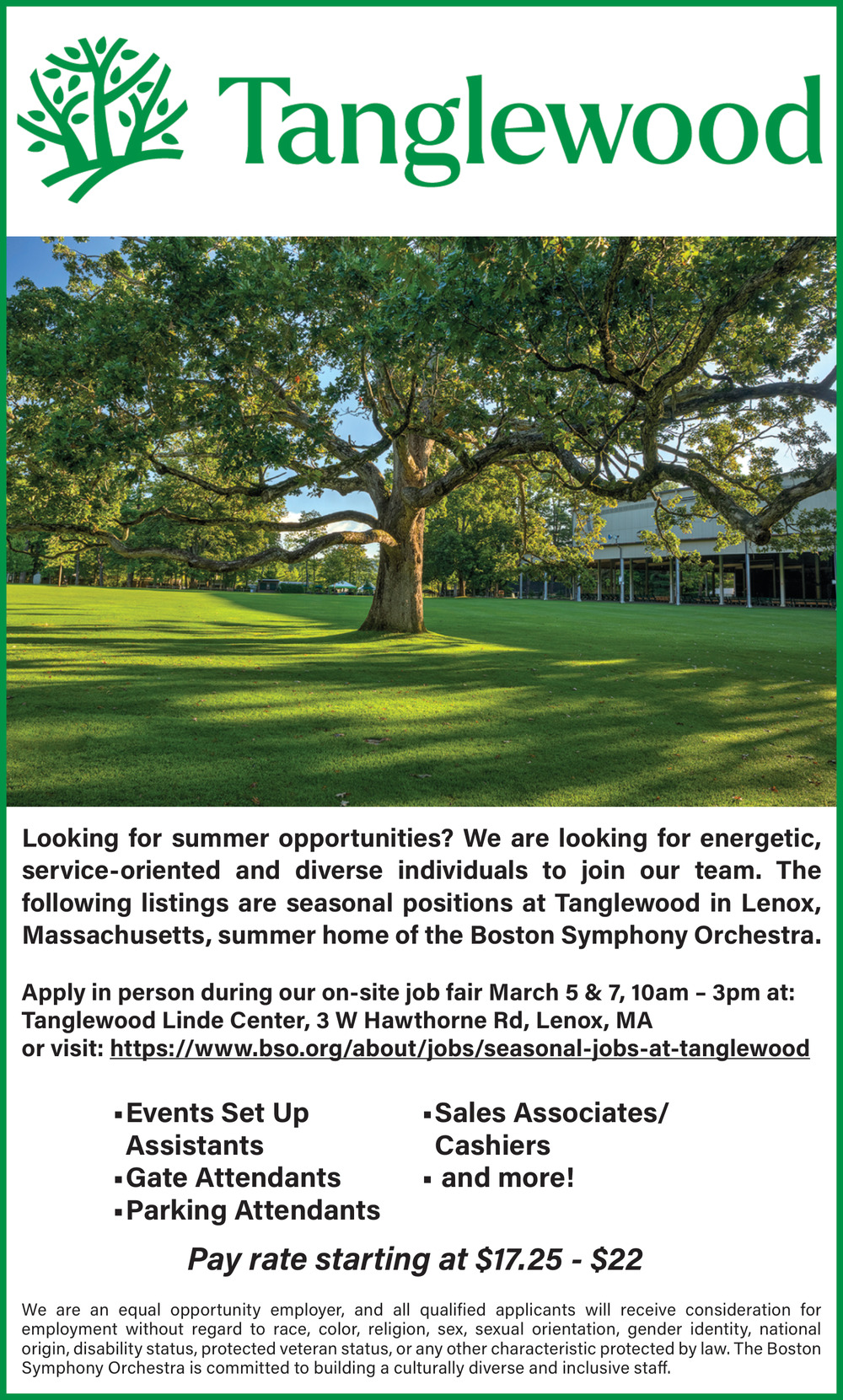 Feb 21, 2026. Tanglewood Jobs from The Berkshire Eagle