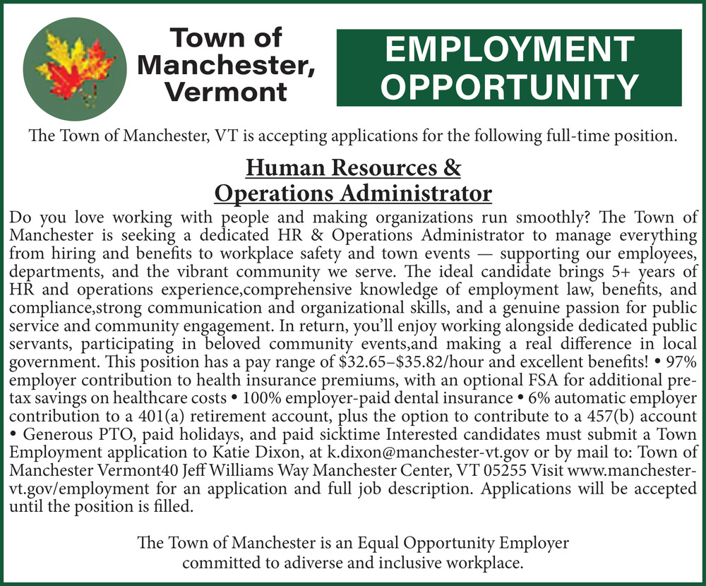 Apr 18, 2026. Town Of Manchester Human Resources Specialist Jobs from The Bennington Banner