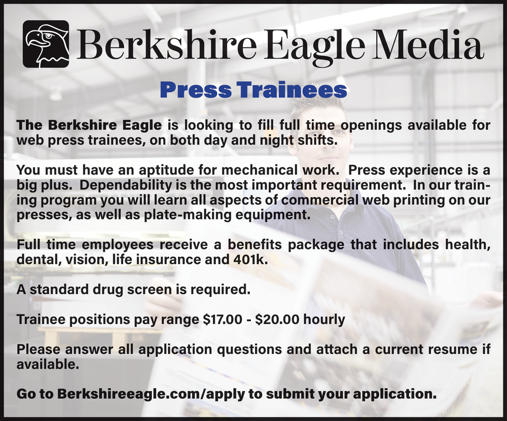 Apr 25, 2026. The Berkshire Eagle Press Trainee Jobs from The Berkshire Eagle