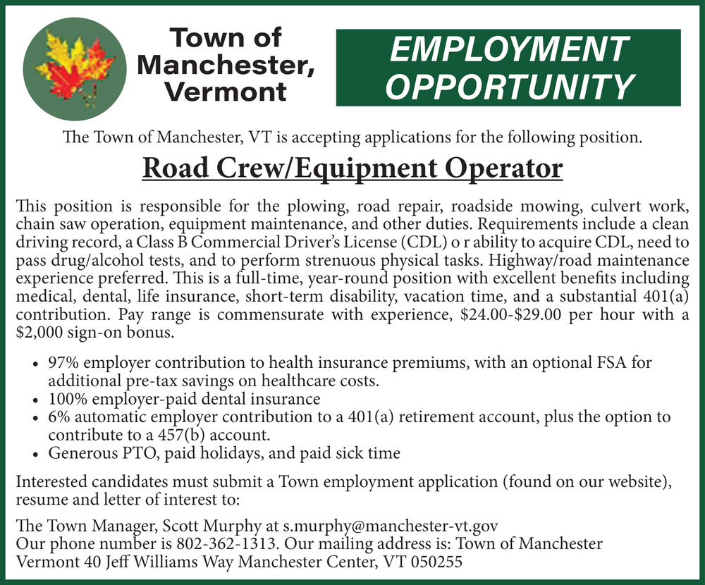 Apr 25, 2026. Town Of Manchester Human Resources Specialist Jobs from The Bennington Banner